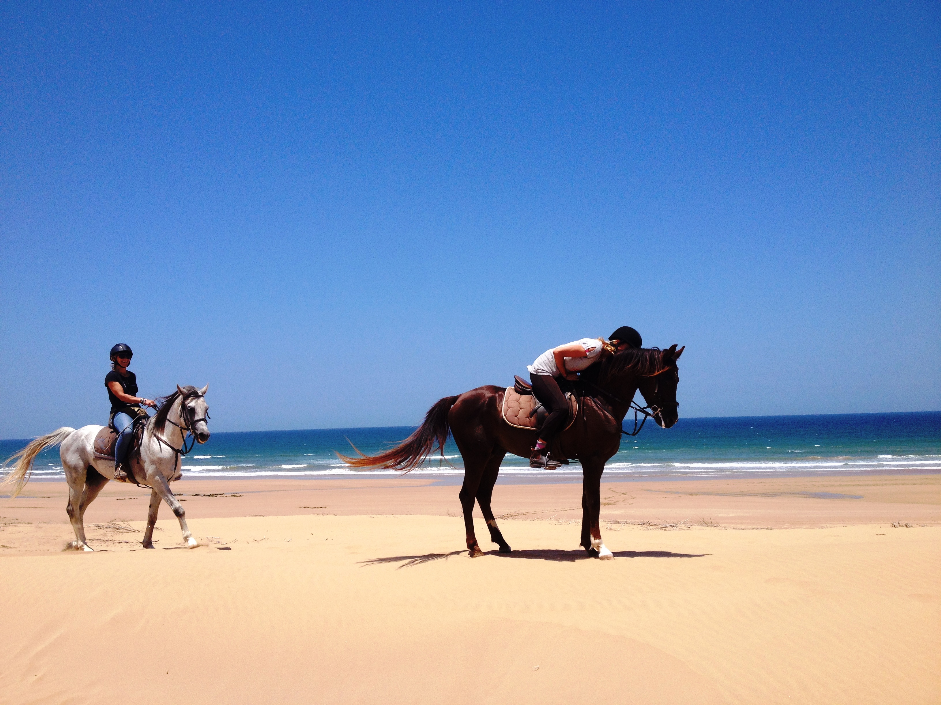 Our experts will provide an introduction before starting your riding adventure along the fantastic beach where you pass along the seaside to the dunes until a little fisher village. You will turn back passing the forest of Eucalypti and Mimosa. This ride is adapted for sportive beginners and as well for children with horse experience. In our service is included the transfer between Essaouira and our Ranch.