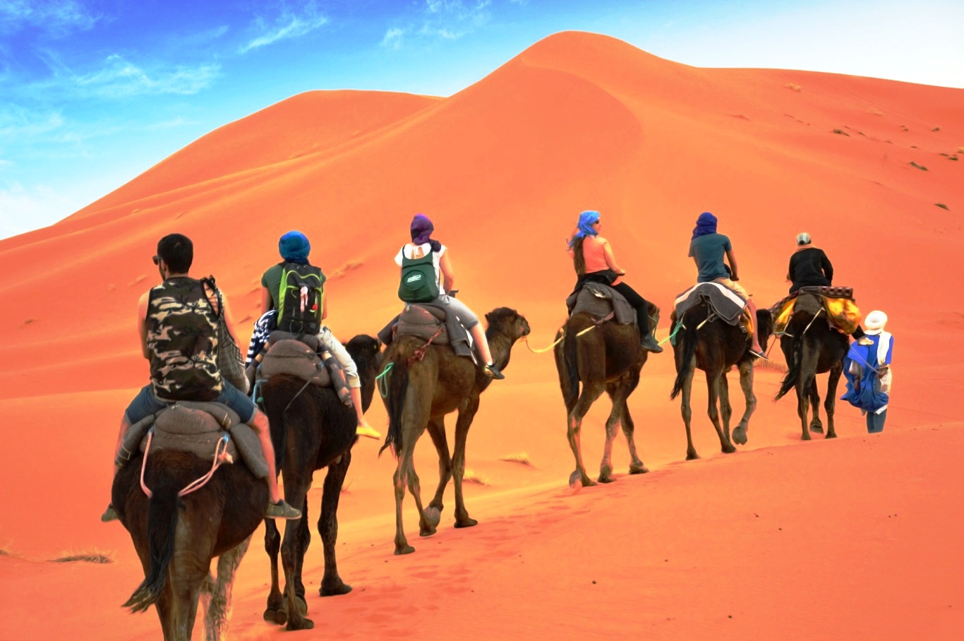 Erg Chegaga camel trekking with a few wanderers crossing paths and small campsites to settle into for the night. You can get there by 4x4 Jeep in less than two hours – is well worth it, and with quieter dunes and more spaced-out camps, the desert experience is much more akin to how you might imagine it. Leave adventurers feeling as if they’re exploring Saturn or another bracingly beautiful sun-kissed planet from another galaxy.