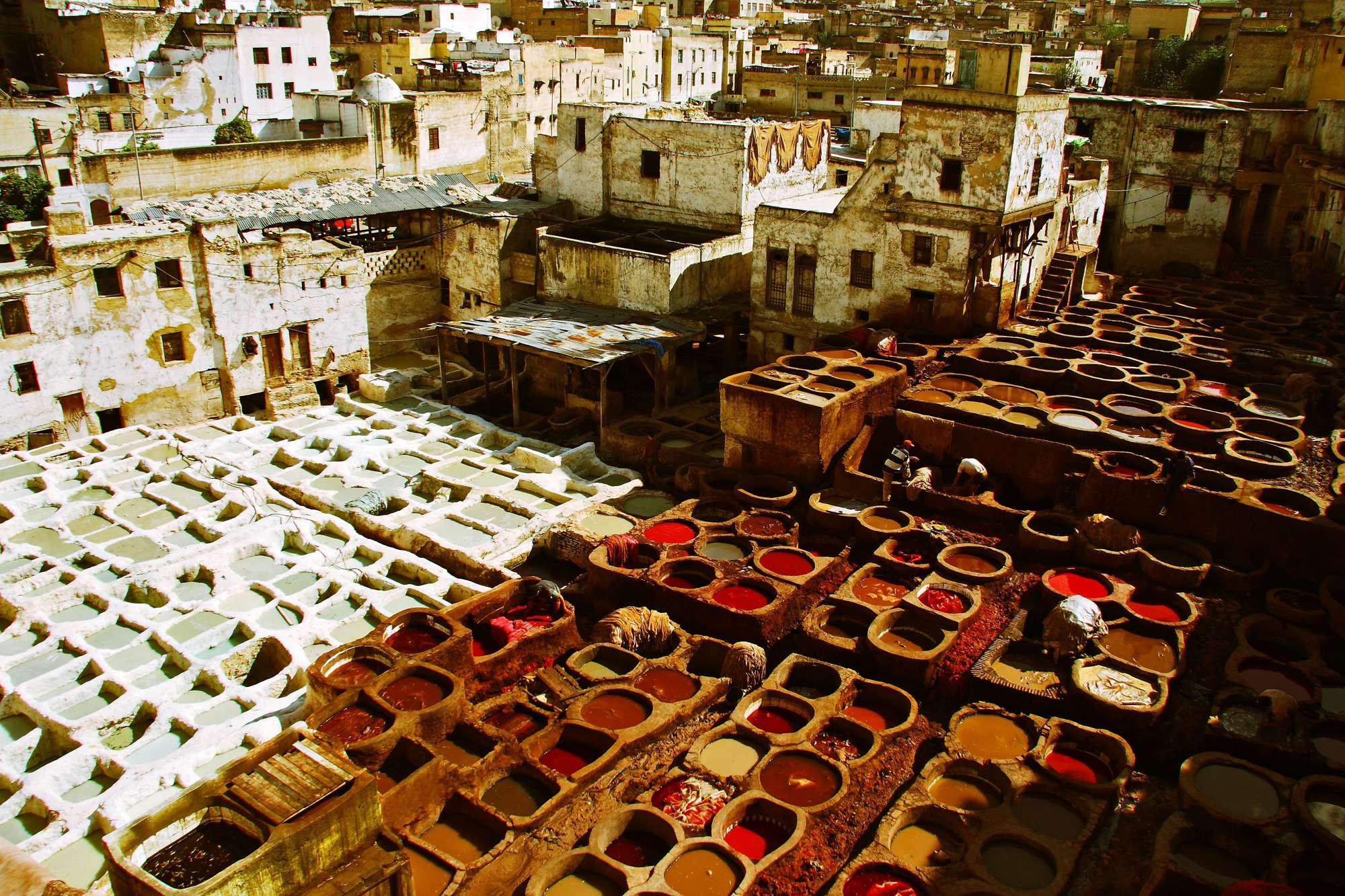 Have a unique sensory experience in Fes, watching the dyeing skills of tanners on display as they use age old techniques to soak and dye skins.